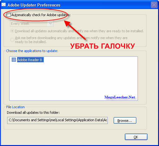 отключить обновления Adobe: