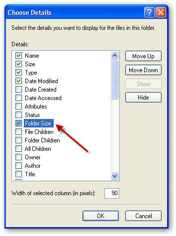 Explorer для отображения размера каждой